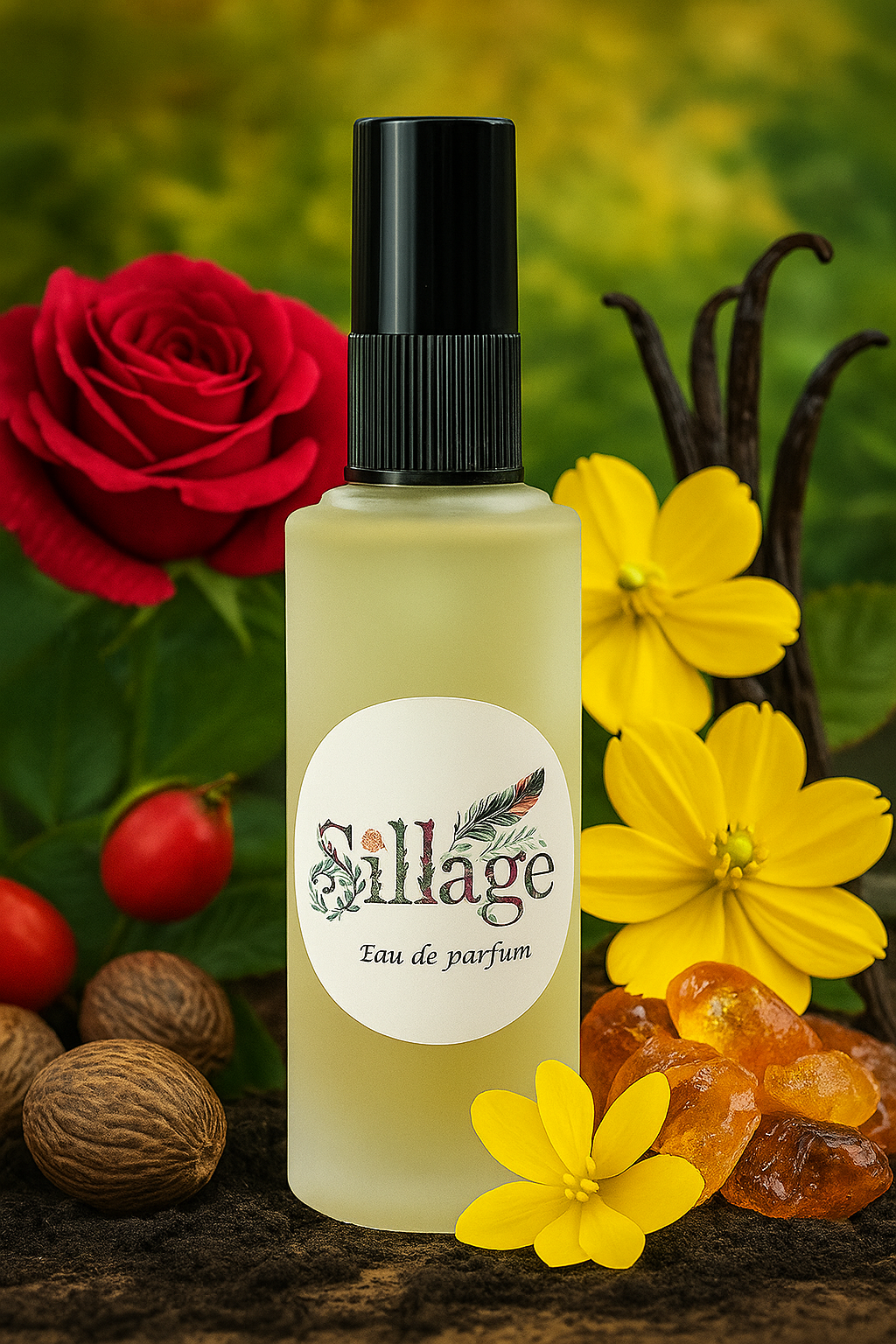 Note de mijloc: Ilang-ylang, nucșoară, ambră